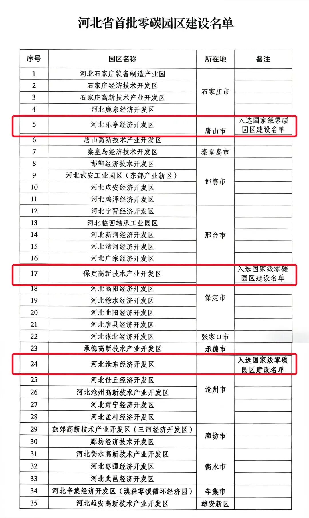 图:河北省首批零碳园区建设名单